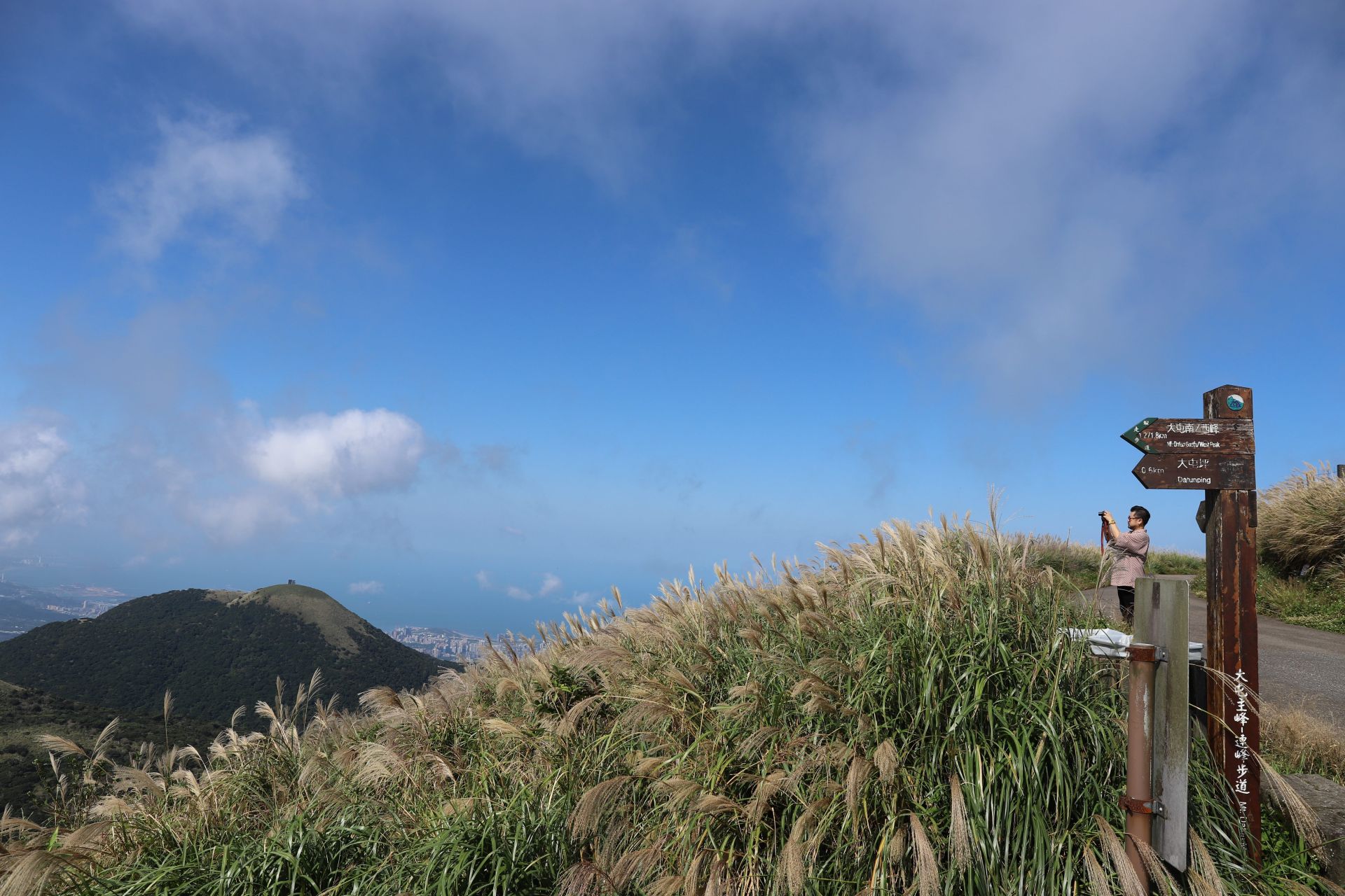 想知道「最佳觀賞 C 位」在哪?那就不能錯過「臺北大縱走」第二段(二子坪至小油坑)和第三段(小油坑至風櫃口)!其中以第二段最為壯麗,全長約 12 公里,從二子坪遊客服務站出發,沿途經面天坪涼亭、大屯山西峰與南峰,一路向上至大屯山主峰。秋日行走其間,步道兩側的箭竹林與芒草,交織成一片柔金色的畫布。風吹過,芒草閃爍著細碎光影,宛如山巒的輕柔呼吸,將旅人溫柔地包圍。