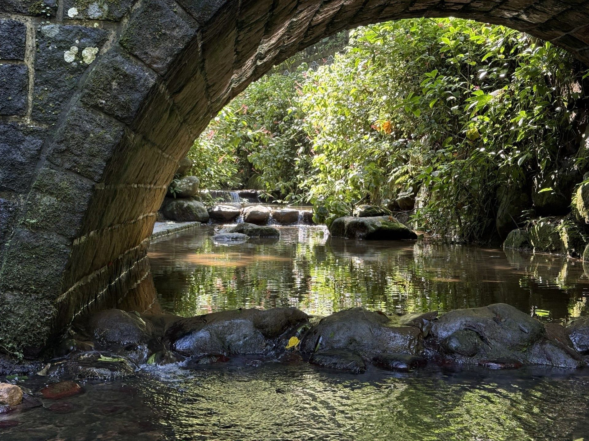山林與溪流創造出的山澗型生態環境,周圍林木層層錯落,樹冠相連,秋日光芒灑落林間,正值季節交替的葉片,光影隨風搖曳交織成一片輕撫淨化城市喧囂的沁涼微風。蕨類與苔蘚在岩壁、腳邊仍然生機盎然,好不可愛,沿途蟲鳴鳥語與風聲交錯,溪面波光粼粼,悄悄地等待著您的到來。