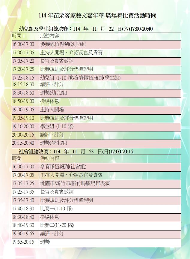 114年苗栗客家藝文嘉年華-廣場舞比賽 11/22、11/23競技共舞<大和傳媒>