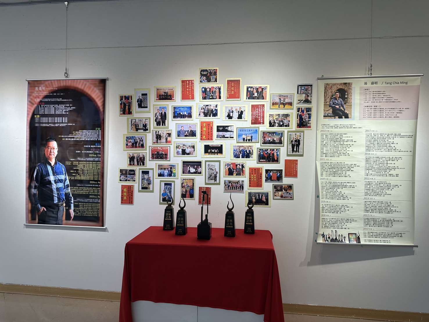 本次展覽特別完整呈現湯老師近年於全國性競賽獲獎的彩墨系列作品,共約30餘件,包括國軍文藝金像獎多件金像獎、銀像獎作品,如《防疫大作戰》、《捍衛與和平》、《戰備》、《軍民同心護家園》等代表作,內容涵蓋國防、防疫、社會關懷與公共議題,展現藝術家以創作回應社會、傳達信念的企圖與深度。此外,湯嘉明老師亦於雲林文化藝術獎表現亮眼,自2010年至2023年間共獲得多項肯定,包括水墨類首獎、西畫類第二名、第三名及入選作品等,足見其藝術創作能量豐沛,並持續以多媒材跨界嘗試與創新,為本縣視覺藝術領域的重要推手。