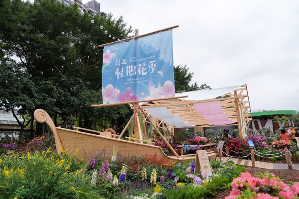 公園處藍舒凢處長指出,為呈現杜鵑花的多元樣貌,今年特別邀請榮獲 BERLIN DESIGN AWARDS 銀獎的王宏亨藝術家,以及隈研吾設計比賽最優秀獎得主王品淮藝術家共同創作大型方舟藝術裝置「拾花號 A’rk」。作品融合自然木構、花卉展示與在地花農共創成果,方舟內可欣賞到超過8大品系的杜鵑,還有桃園區農業改良場合作借展的「桃園1號」紅玫瑰杜鵑、「桃園2號」火炬杜鵑,以及自新北市金山產銷班借展的原生種杜鵑烏來杜鵑、自行雜交栽培品種杜鵑,使「拾花號」成為園區最具代表性的賞花與拍照亮點。