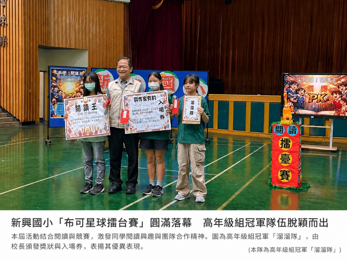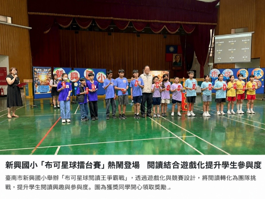 (記者 羅挺元/台南報導)為提升學生閱讀興趣,臺南市南區新興國小結合在地文化與數位閱讀資源,運用「布可星球」閱讀平台,舉辦「布可星球閱讀王爭霸戰」,透過遊戲化與競賽化設計,讓閱讀不再只是靜態學習,而是充滿挑戰與樂趣的團隊活動。