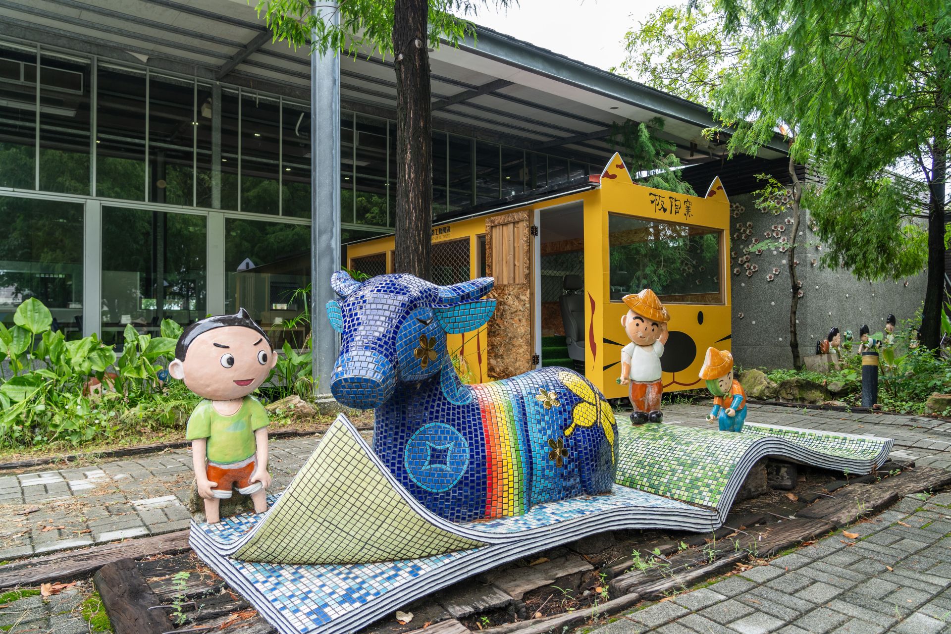 文觀局表示,除了海賊庄外,新港周邊匯聚多處適合親子共遊的景點,遊客可規劃1日或2日行程,拜訪「板陶窯交趾剪黏工藝園區」,欣賞古典建築與瀑布庭園造景,遍布色彩繽紛的交趾陶與馬賽克拼貼藝術,也有立體貓狗咖啡座與大型裝置藝術,是拍照打卡與親子DIY的熱門地點。