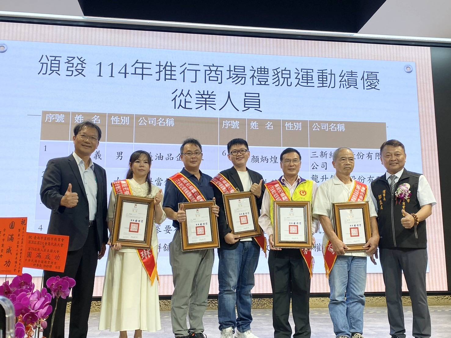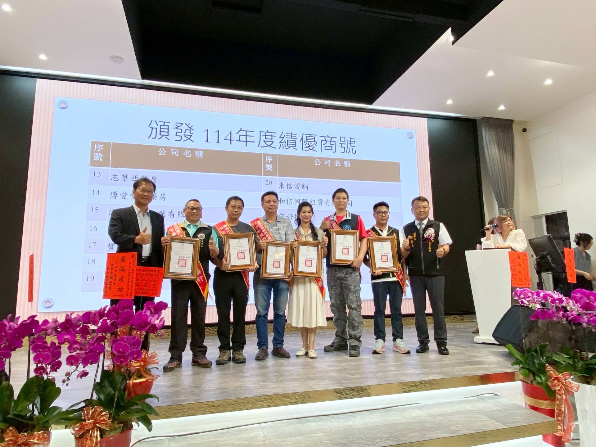 隨後由臺南市政府經濟發展局副局長蕭富仁代表市長黃偉哲,頒發「114年度績優商號」與「114年度績優從業人員」獎項,以表彰商界人士對地方經濟發展的貢獻與努力。