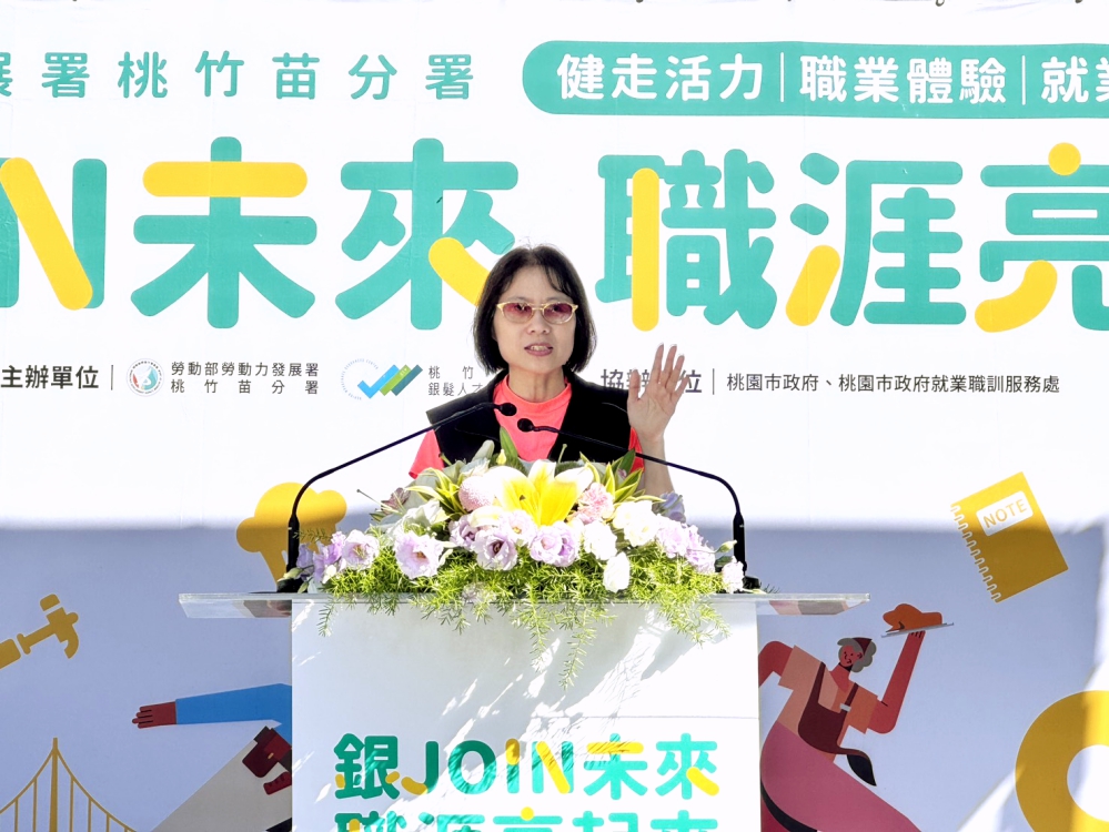 ▲展現銀髮朋友充沛的行動力與社會價值,「銀JOIN未來.職涯亮起來」健走活動盛大登場,勞動部勞動力發展署長黃齡玉出席致詞。(圖/桃竹苗分署提供)