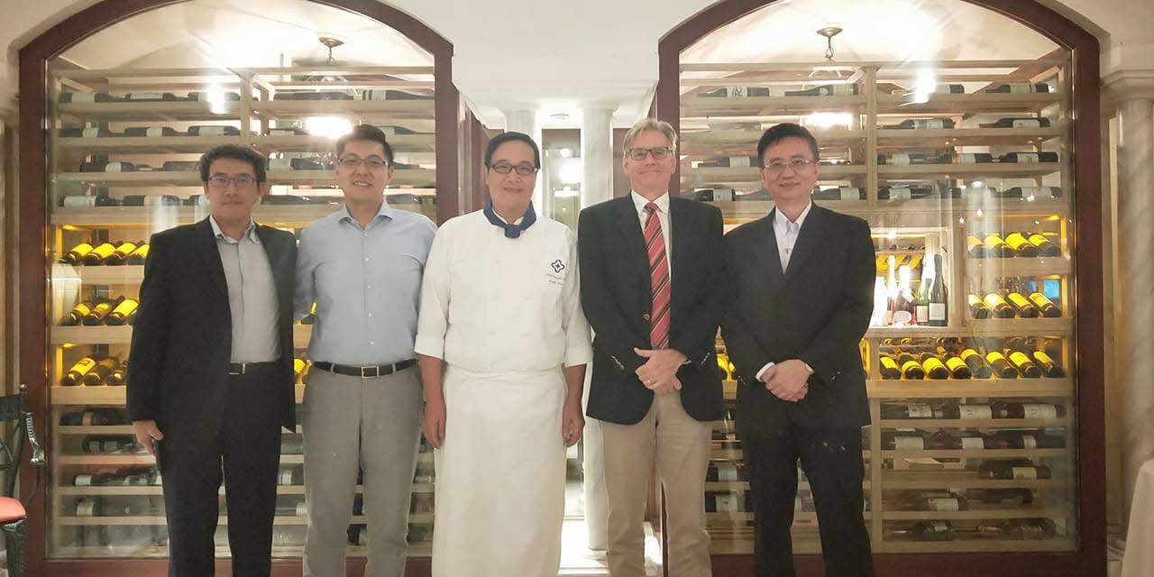 ▲想到牛排就會想到他---郭榮宗主廚:巴拉圭前總統盧戈(右1)到地中海用餐,體驗歐華酒店築夢牛排的工藝。(圖/郭榮宗主廚提供)