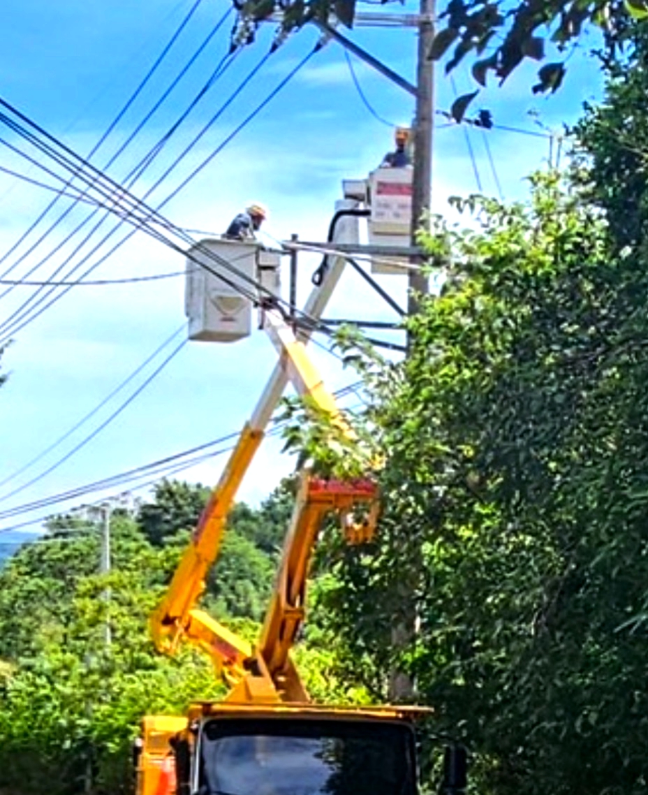 ▲鳳凰颱風來勢洶洶,台電新竹區處全力戒備預防性修剪樹竹,同時並籲請民眾多利用網路通報查詢停復電資訊。(圖/台電新竹區處提供)