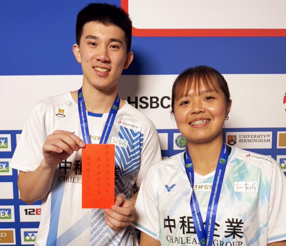 ▲台灣選手勇奪全英賽雙冠創史上最佳紀錄!混雙組合:葉宏蔚/詹又蓁,榮獲頒激勵獎金10萬元。(圖/中華羽協提供)